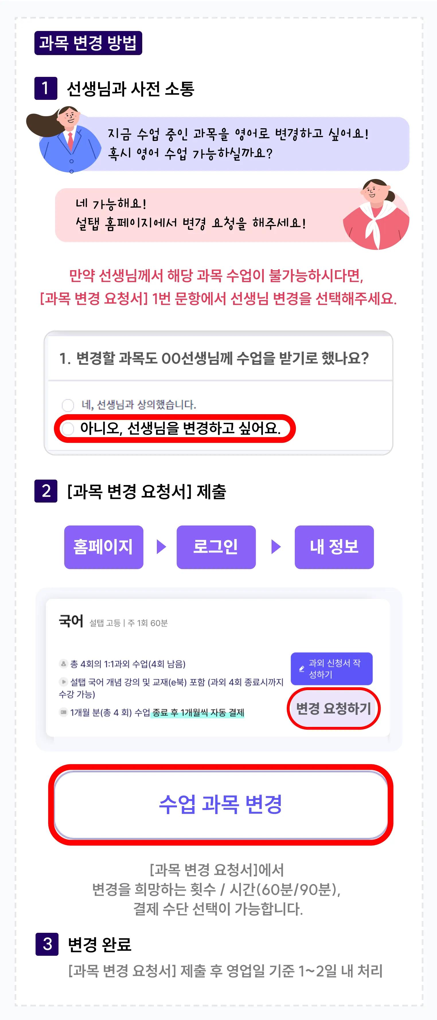 설탭 홈페이지 로그인 후, [내 정보]에서 본인에게 맞는 요청서를 작성해주시면 됩니다